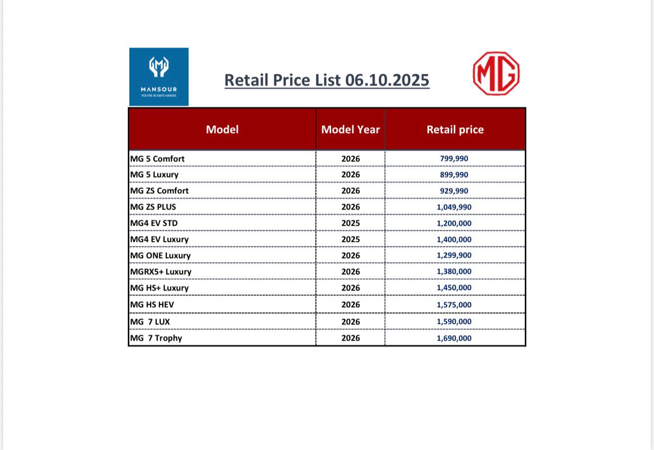 رغم التغيرات المحدودة، حافظت باقي طرازات MG على أسعارها دون تعديل.
