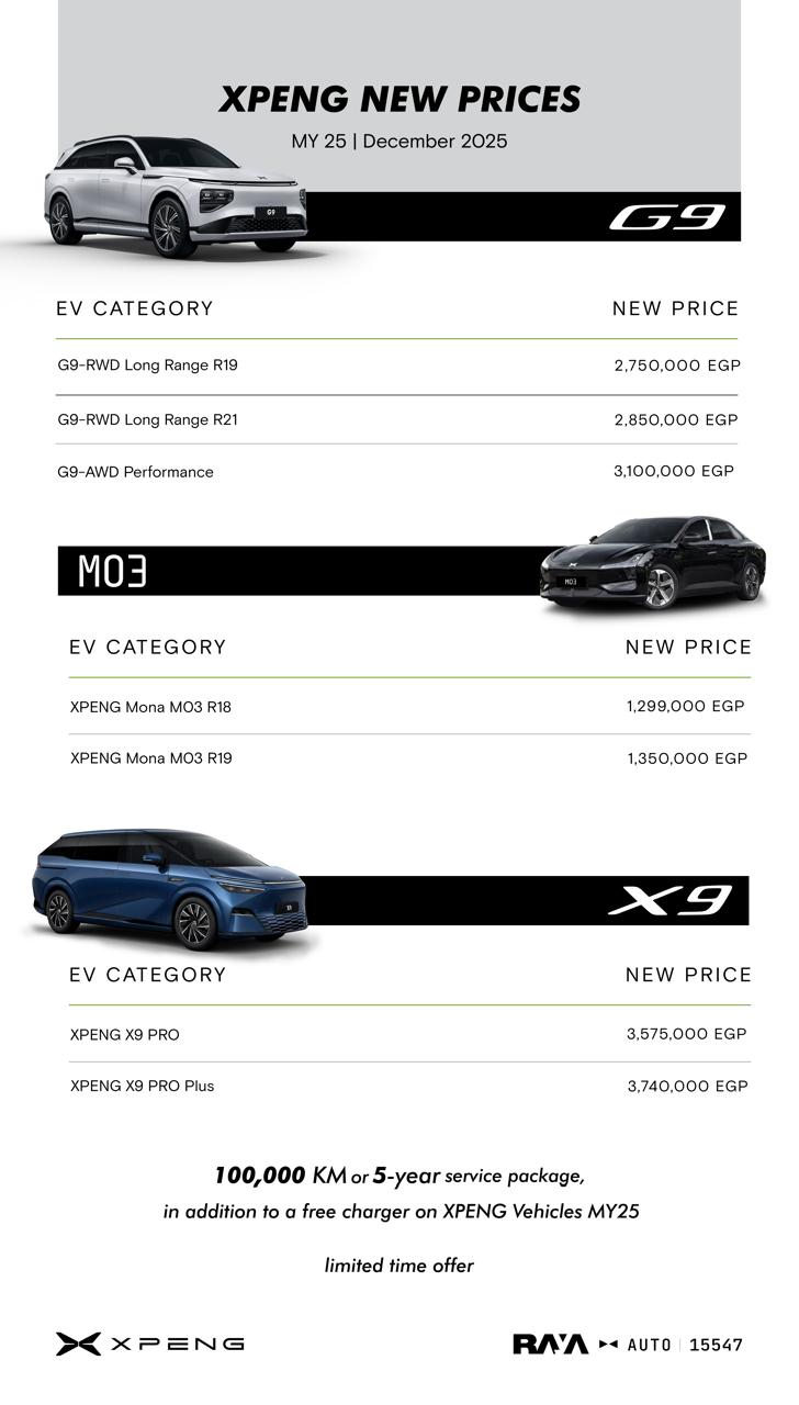 وتأتي هذه التحركات بالتوازي مع اعتماد سياسة سعرية جديدة لموديلات XPENG في مصر، إثر دعم كبير من الشركة الأم خلال الربع الأخير من العام لموديلات عام 2025. حيث تم تحديد الأسعار بعد سلسلة اجتماعات بين إدارة XPENG العالمية وراية أوتو، عقب زيارات رسمية متبادلة بين مصر والصين. وتهدف هذه المراجعة إلى تحقيق توازن بين دعم المصنع للعملاء وتقديم أسعار تعكس التطورات في سعر الصرف والتنوع الحالي داخل سوق السيارات الكهربائية، بما يقدم قيمة أعلى وتجربة أفضل لشريحة أوسع من المستخدمين.